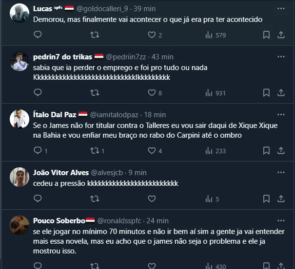Além das presenças de James e Rato, outro ponto que chamou atenção foi a ausência de Jonathan Calleri, indicando que ele dificilmente estará disponível para o duelo de Córdoba.