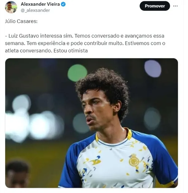 “Luiz Gustavo interessa sim. Temos conversado e avançamos essa semana. Tem experiência e pode contribuir muito. Estivemos com o atleta conversando. Estou otimista”, afirmou o presidente.