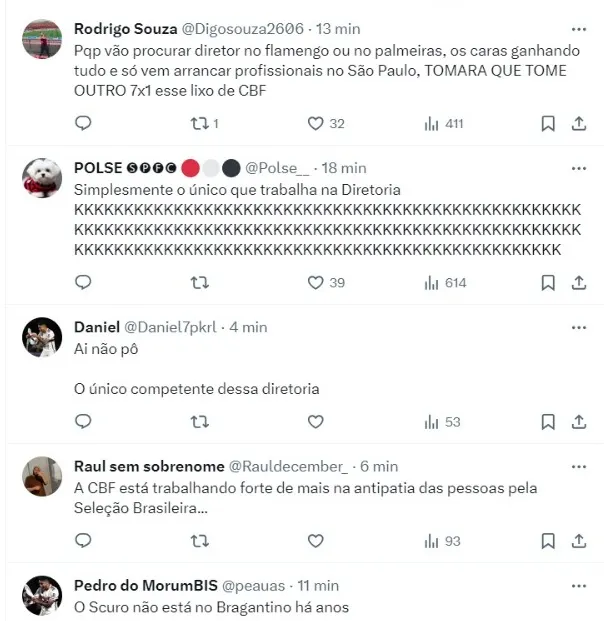A entidade trabalha com outros dois nomes nos bastidores: Rui Costa, do São Paulo, e Thiago Scuro, ex-Red Bull Bragantino e hoje no Monaco, da França, completa Bruno Andrade.