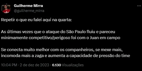 Com isso, a diretoria capitaneada pelo presidente Julio Casares segue de olho no mercado da bola, em busca de novas opções para Dorival Júnior, principalmente no setor ofensivo, calcanhar de Aquiles do time com o desfalque de Calleri.