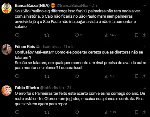 O colunista Paulo Vinícius Coelho, o PVC, sugeriu que um telefonema do Palmeiras ao São Paulo antes de entrar nas negociações evitaria possíveis mal-estares entre os clubes. Em sua participação no programa “De Primeira”, do UOL Esporte, PVC questionou se Caio Paulista valeria todo o esforço, considerando que, apesar de uma boa temporada, ele não se equipara a lendas do futebol brasileiro.