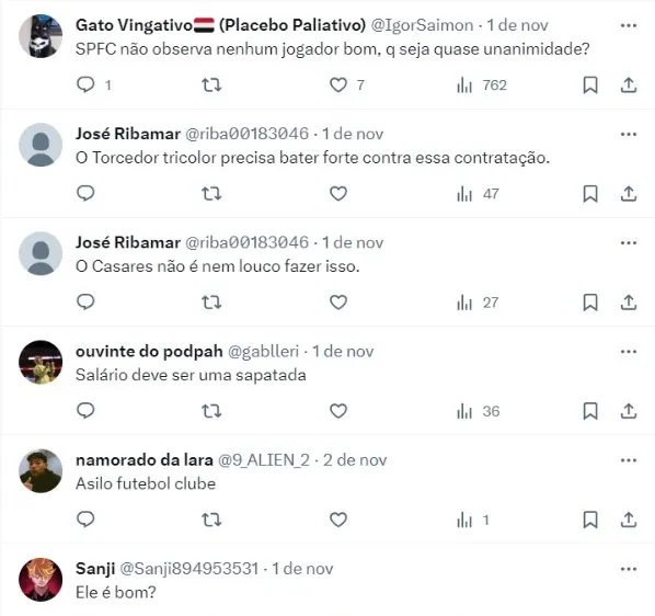 Segundo a nossa reportagem, a diretoria do São Paulo confirma que é um nome sondado, mas não é tratado como prioridade é dificilmente seria contratado.