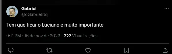 É o caso do atacante Luciano. O camisa 10 são-paulino tem sondagens do futebol árabe e a sua situação parecia estar longe de ficar no São Paulo. No entanto, Casares afirmou que conta com o jogador para 2024.