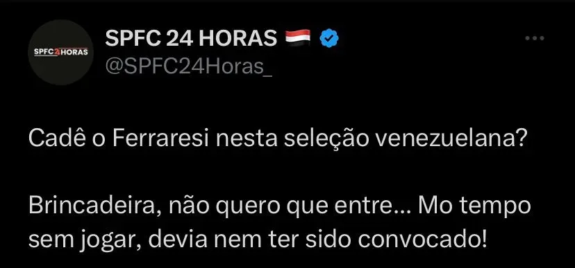 Na última quinta-feira (12), Nahuel Ferraresi não saiu do banco de reservas no empate em 1 a 1 com o Seleção Brasileira, na Arena Pantanal, em Cuiabá. Independentemente de entrar em campo ou não pela seleção venezuelana, Nahuel Ferraresi voltará ao São Paulo com a expectativa de, enfim, ser acionado pelo técnico Dorival Júnior, que nem estava no clube quando o zagueiro disputou seu último jogo com a camisa tricolor.