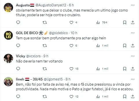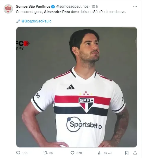 Em publicação da ESPN Brasil, fica claro que Dorival Júnior não vai utilizar Alexandre Pato contra o Cruzeiro, mas a situação vai além. Ainda de acordo com a matéria assinada por Eduardo Affonso, o atleta não deve ficar no Clube em 2024.