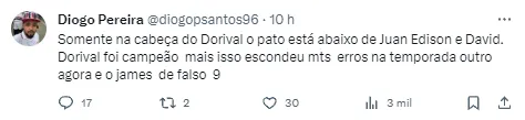 Com 34 anos, o jogador não vem sendo relacionado há 15 dias, perdendo as partidas contra o Grêmio, Palmeiras e Athletico-PR. A reportagem salienta ainda que Dorival segue deixando Pato de fora mesmo com as lesões de Lucas e Calleri.