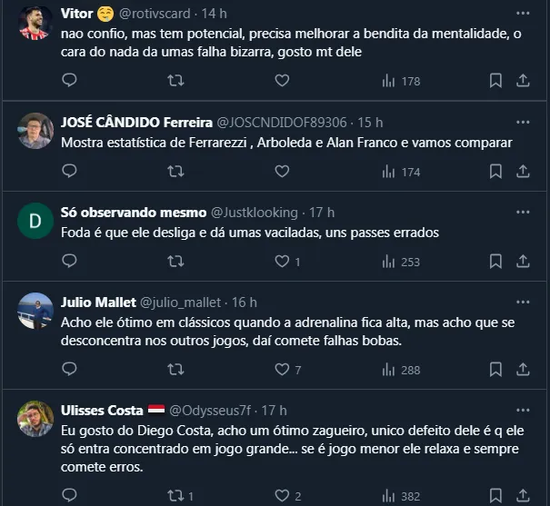 Torcida do SPFC avalia Diego Costa