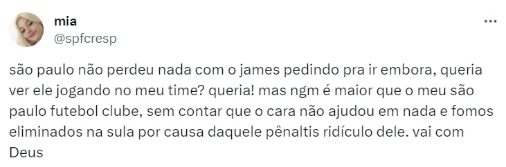 A publicação veio logo após o pedido de rescisão por parte de James, que contava com a confiança da diretoria para ser o protagonista não só dos títulos recentes, mas da Libertadores de 2024.