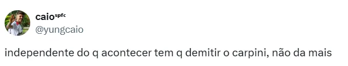 Com este cenário, a diretoria do São Paulo entrou em um consenso sobre o futuro de Thiago Carpini: será mantido no cargo mesmo em caso de eliminação para o Novorizontino nas quartas de final do Estadual.