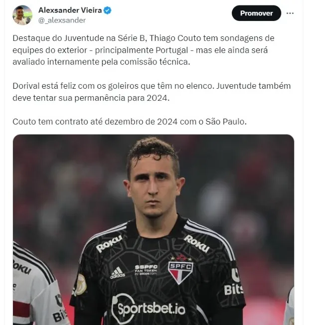Couto tem contrato até dezembro de 2024 com o São Paulo. Ele foi alçado ao time principal pelo técnico Rogério Ceni e chegou a ter algumas partidas de destaque ano passado, mas também acumulou falhas.