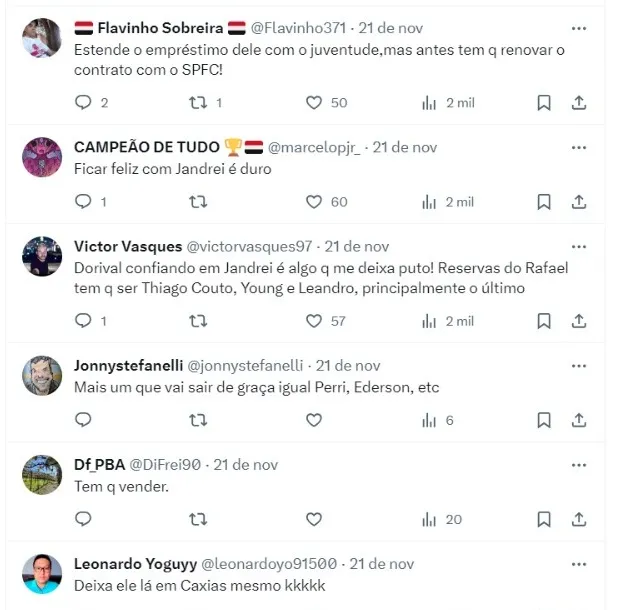 Dorival está feliz com os goleiros que têm no elenco. Juventude também deve tentar sua permanência para 2024, principalmente se conseguir angariar uma vaga na primeira divisão.