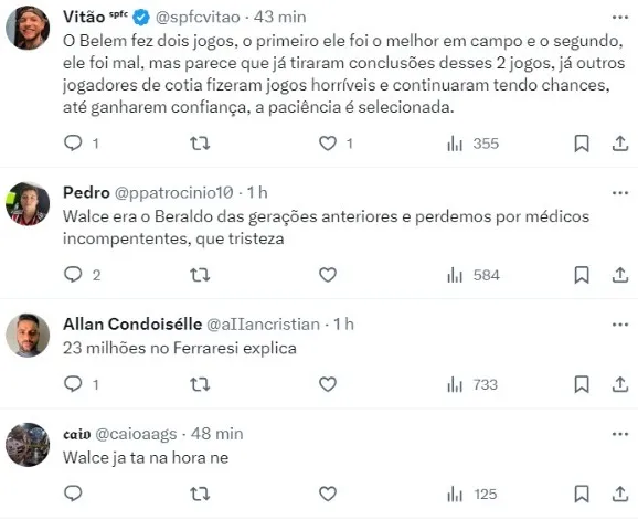 Por outro lado, Walce voltou a ser relacionado depois de dois anos pelo São Paulo contra o Fortaleza – ele foi emprestado ao Juventude em meio a duas operações no joelho – e não voltou a atuar.