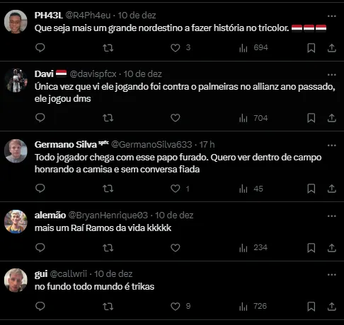 “Estou muito feliz com a oportunidade de estar aqui. Tenho certeza de que 2024 será um grande ano, e o clube conquistará os objetivos. Estou motivado com a chance de disputar a Libertadores pelo São Paulo”, afirmou o atleta.