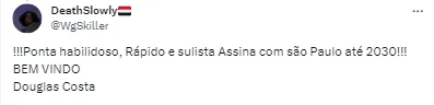 Nos últimos dias, surgiu uma especulação envolvendo uma possibilidade do São Paulo estar interessado na contratação do experiente e badalado atacante Douglas Costa. O jogador vem sendo alvo de especulações e está livre no mercado.