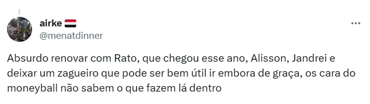“Se realmente não houver uma definição por parte do São Paulo, no qual a diretoria me confirmou que daria uma posição em uma semana sobre a minha continuidade, vou entender que minha história não continuará, pelo menos neste momento, aqui no clube e vou avançar no planejamento do meu futuro fora do São Paulo”, escreveu Belém.