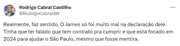 Você, são paulino, é a favor da permanência de James Rodríguez?