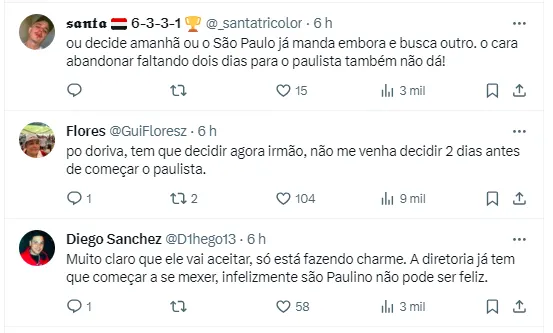 Reações de torcedores sobre a situação de Dorival