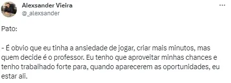 Na derrota por 2 a 1 para o América-MG, uma das poucas notícias boas em relação ao São Paulo foi sobre o atacante Alexandre Pato. O experiente atacante fez um gol na partida. Na entrevista, após o jogo, o medalhão deixou claro que gostaria de ter mais oportunidades e ainda fez questão de cobrar Dorival por mais chances.