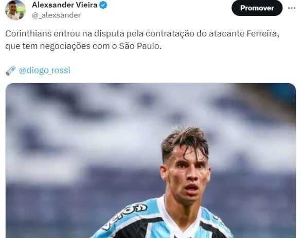 O Corinthians entrou na disputa pela contratação do atacante Ferreira, que tem negociações com o São Paulo. Segundo apurou a reportagem, a diretoria tricolor já tem um acerto com o atleta.