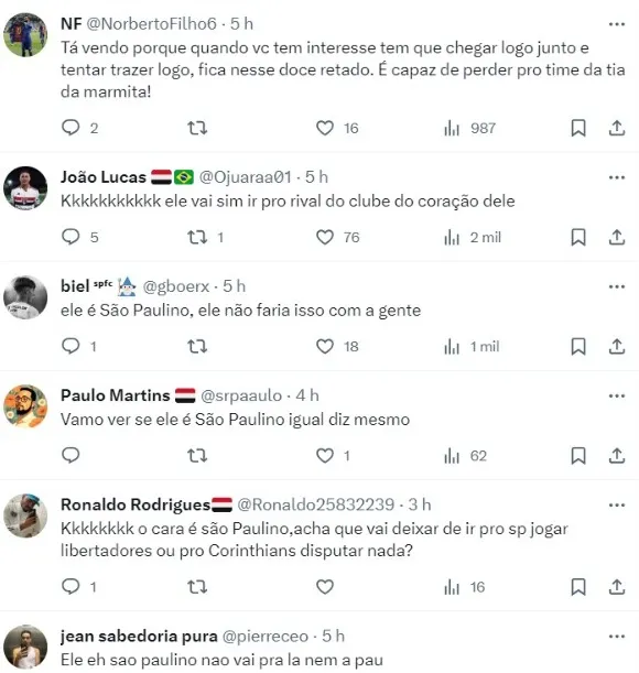 Com o desejo do jogador, o Tricolor Paulista também acredita que deve conseguir vencer a concorrência do rival Corinthians nesta situação, bem como de outras equipes.