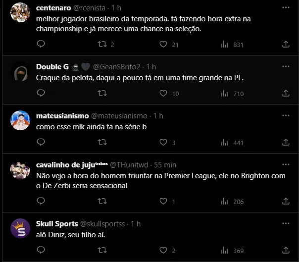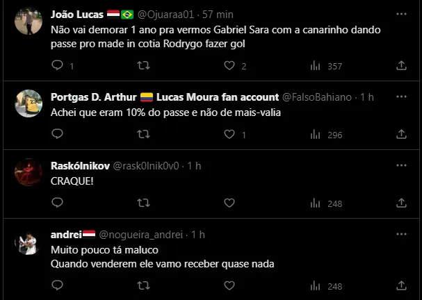 Com o gol anotado, Gabriel Sara ampliou ainda mais seus bons números na Championship. Em nove partidas disputadas até o momento, o ex-jogador do São Paulo tem média superior a uma participação em gols a cada dois jogos. Ao todo, são dois tentos e três assistências. Além disso, o meia já realizou 28 desarmes e deu 36 passes decisivos no torneio, um verdadeiro maestro. Confira alguns comentários de torcedores empolgados que o SPFC possui 10% da mais valia: