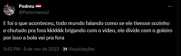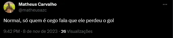 “E foi o que aconteceu, todo mundo falando como se ele tivesse sozinho, brigando com o vídeo”, “Normal, só quem é cego fala que ele perdeu o gol” e “Também, porque a bola sempre esteve mais para o Cleiton que para o Araújo” foram os comentários.