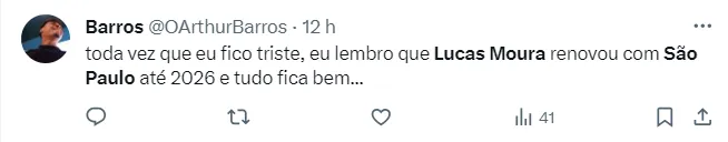 O torcedor são-paulino está feliz da vida. Lucas Moura e o São Paulo chegaram a um acordo nesta sexta-feira (22), e o contrato do jogador de 31 anos está renovado com o Tricolor Paulista até dezembro de 2026.