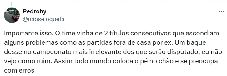 Deste modo, a expectativa da diretoria é que Carpini consiga engrenar o time novamente no decorrer da temporada e que a equipe dispute os principais títulos de 2024, fazendo frente a Palmeiras, Flamengo, Atlético e outros.