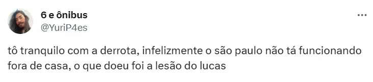 Além de perder a partida, o São Paulo perdeu uma peça mais do que importante para os próximos jogos. Nos minutos finais do primeiro tempo, Lucas Moura deixou o gramado reclamando de dores na coxa esquerda. Após exames, foi detectado um estiramento que deixará o camisa 7 fora de combate por até um mês. Em suas redes sociais, Lucas se manifestou.