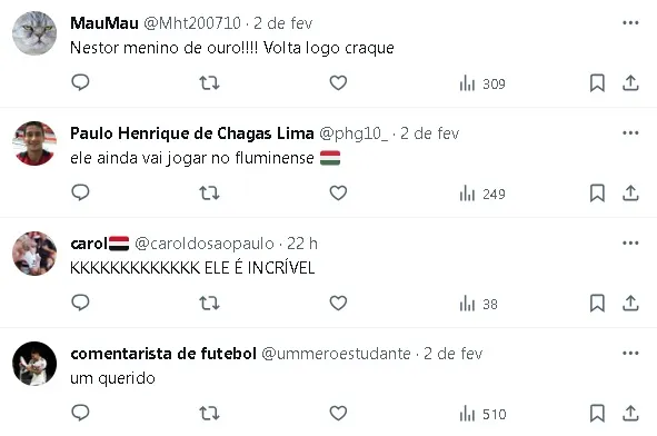 Nestor também compartilhou uma brincadeira sobre como seria sua comemoração caso o Tricolor conquiste o título: “Vou invadir o campo e pegar uma medalha (risos).”