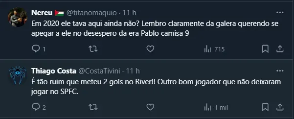 Por outro lado, ele acabou sendo suspenso por 12 meses por conta de um teste positivo para cocaína. Assim, não conseguiu dar sequência na sua carreira pelo Brasil, mas os gols contra o River Plate voltaram a ser assunto entre os são-paulinos, que também seguem empolgados com o início de Zubeldía.