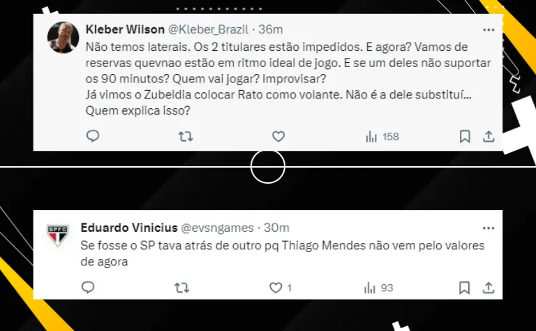Casares quer repatria-lo, mas confessou que o negócio é difícil: “Uma coisa importante é que o Thiago Mendes é um cara que quer vir para o São Paulo, a família também, nós queremos o Thiago, mas não podemos fazer algo muito acima do orçamento. Nós podemos fazer pouco acima. É um grande jogador, um grande sonho que ele volte. Mas se não for possível, vamos trabalhar com planos A, B e C. Esperamos que ele possa vir, mas nós não vamos entrar em leilão, não vamos comprometer nossa situação financeira, que é sofrível”.