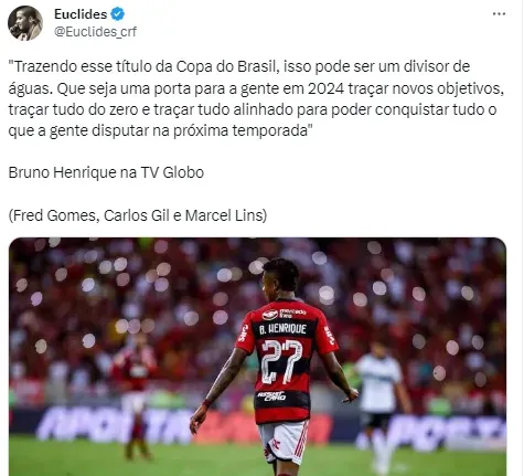 Em entrevista para a TV Globo, em rede nacional, o atacante Bruno Henrique, do Fla, deixou claro que a competição é vista como o grande foco do Rubro-Negro Carioca para salvar a temporada e o time aposta tudo nesse título para poder trabalhar com calma pensando em 2024. Ou seja, os cariocas vão entrar com tudo em busca dessa taça para não terminar o ano sem uma conquista.