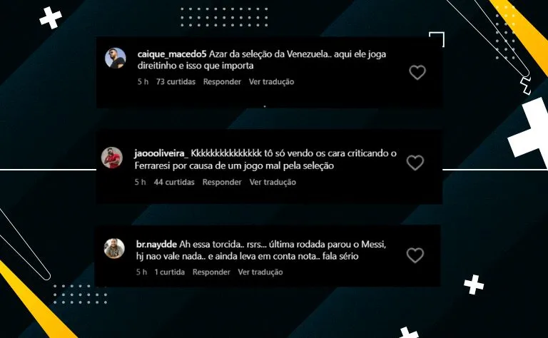 Comentários como “azar da seleção da Venezuela, aqui ele joga direitinho” e “na seleção ele pode ter problemas, mas no São Paulo ele joga certinho” mostram que, para muitos, o que conta é uma performance no clube, e não apenas em jogos internacionais.