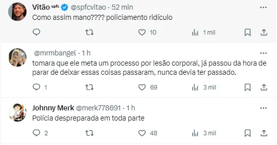 Em um vídeo circulado nas redes sociais, é possível ver que Ferraresi, do São Paulo, é agredido por um dos policiais. Essa Data Fifa ficou marcada com violência de policiais aos torcedores também, como no jogo entre Brasil x Argentina.