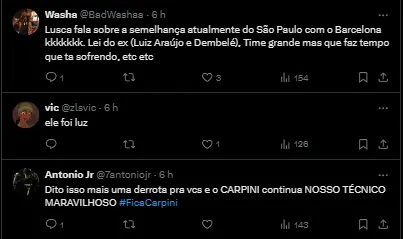 Nomes como Felipão, Vanderlei Luxemburgo, Diego Alonso, Zubeldia e até José Mourinho foram especulados no time paulista, porém, até agora, nenhum teve acerto. Até o momento, Thiago Carpini segue no comando, mas a mudança pode acontecer em breve.