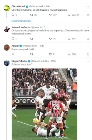 “Eu entendo que o time adversário tem que segurar mais o jogo, mas ele só deu 5 minutos de acréscimo. Nenhum jogo mais do Campeonato Brasileiro se dá 5 minutos. Ele pede paciência, mas fazer o quê? A gente não tem muito o que reclama”, completou Renato Augusto na entrevista pós-jogo.