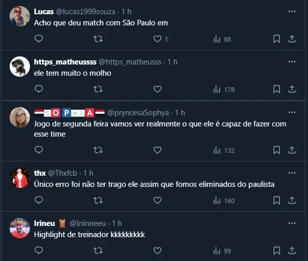 “Feliz por ele estar no futebol brasileiro também. Será um grande desafio para ele comandar o São Paulo e eu tenho um apreço muito grande por ele, é um pai futebolístico para mim. Espero dar o meu melhor e respeitá-lo ganhando, né? (risos) Estou feliz de encontrá-lo no campo de jogo”, disse ao site oficial do Porco.