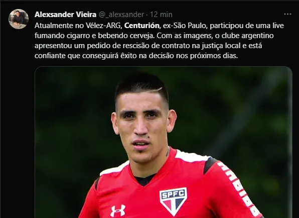 Dito isso, como não jogará neste fim de semana, o torcedor tricolor apenas acompanhará o universo futebolístico de fora. Inclusive, um ex-jogador do SPFC se envolveu em uma polêmica recente. Trata-se do atacante Ricardo Centurión, que passou pelo Tricolor entre 2015 e 2016. Na época, era tido como uma grande promessa e chegou a fazer gols importantes pelo Clube da Fé, mas não deixou saudades.