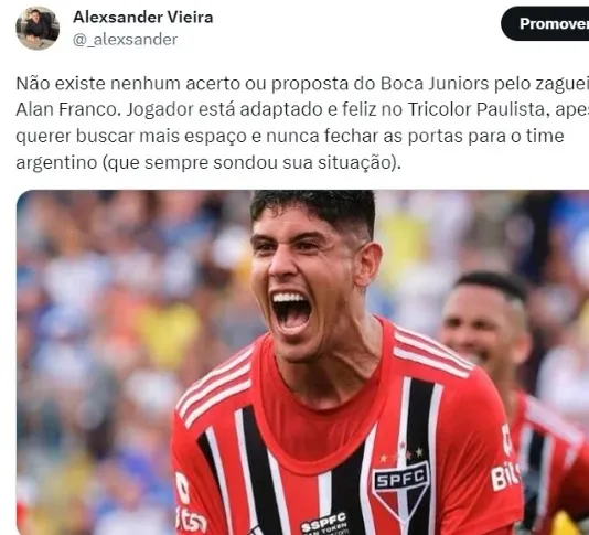 Em contatos com colegas da Argentina, a reportagem ouviu que o clube tentaria um negócio por empréstimo, o que foi completamente descartado pelo São Paulo. Alan Franco só vai deixar a equipe do Morumbi mediante a um bom pagamento pela compra do atleta, o que o Boca não deve conseguir fazer.