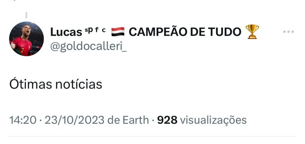 O São Paulo é o 10° colocado do Brasileirão com 38 pontos. O time de Dorival precisa de pelo menos mais 10 pontos para evitar qualquer chance de rebaixamento no torneio nacional. Segundo o matemático Tristão Garcia, o Soberano tem apenas 1% de ser rebaixado para a Série B em 2024.
