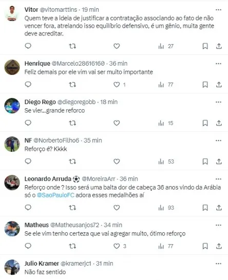 Com isso, o volante gostou de tudo que ouviu e deu o aceite para seu representante intensificar as negociações, tanto que Julio Casares já se reuniu com o empresário no Morumbi para alinhar alguns detalhes.