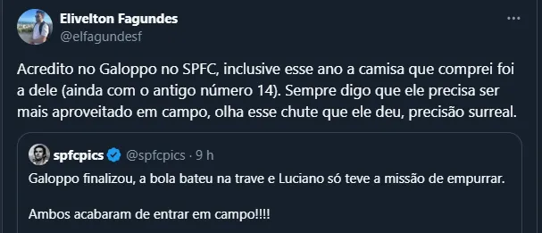 Todavia, apesar das perdas de Lucas Moura, Rafinha e Wellington Rato por lesão, o nível de intensidade do Talleres foi algo que impressionou alguns jogadores do São Paulo, como o próprio Galoppo comentou na saída do gramado: