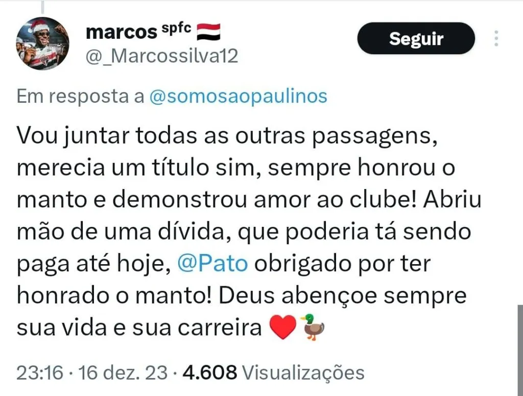 Na partida deste final de semana o atacante não quis falar com a imprensa e decidiu não falar sobre seu futuro. Apesar disso, Pato deve fazer a recuperação no CT da Barra Funda e procurar um novo destino.