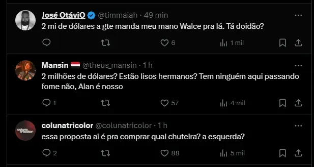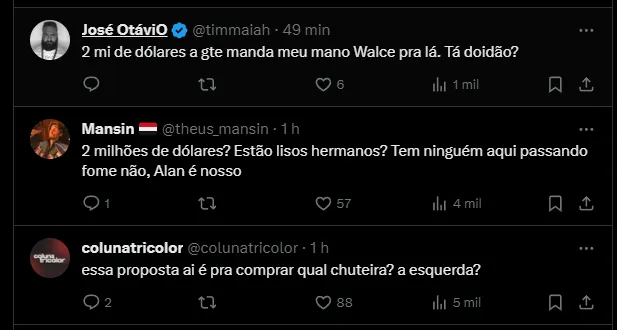 Segundo o jornalista Gabriel Sá, o Independiente deve realizar uma nova proposta para contar com Alan Franco. A princípio, o valor da negociação seria em torno de 2 milhões de dólares.