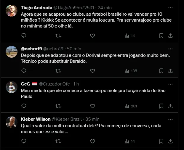 Em contrapartida, o São Paulo perdeu o seu zagueiro que atuava pelo lado esquerdo, Beraldo não fará parte do elenco na próxima temporada. A princípio, Alan Franco seria o substituto na posição.