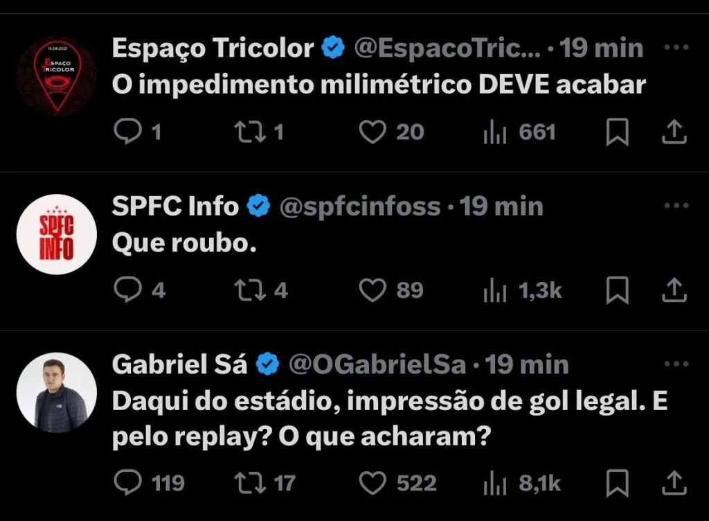 No entanto, muitos torcedores e jornalistas nas redes sociais questionaram a anulação, inclusive querendo a nova regra do impedimento, da diferença de um corpo: “Gol ou impedimento, é muito difícil decidir qualquer coisa com isso aqui. A CBF deveria investir em um software mais claro. Grana para isso tem”, escreveu o jornalista Raí Monteiro no X.