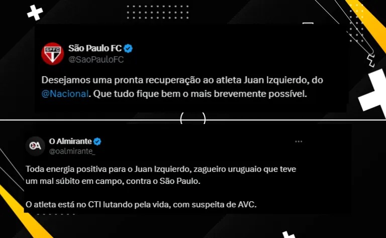 “Juan Izquierdo sofreu uma arritmia cardíaca durante a partida contra o São Paulo. Ele está sendo atendido no CTI do Hospital Albert Einstein. Atualmente ele está estável e permanece em observação. Continuaremos atualizando as informações”, escreveu o clube.