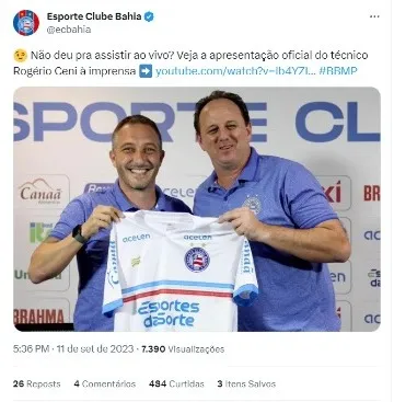 “É a oportunidade da minha vida, da minha carreira. Tratarei o Bahia como se fosse o São Paulo”, comparou Rogério Ceni.