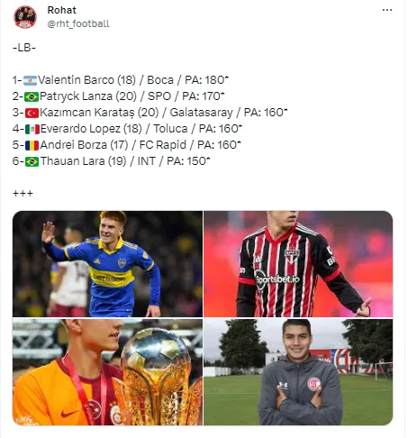 “Patryck Lanza, lateral-esquerdo, formado nas categorias de base do Tricolor, e com passagem por todas as seleções de base do Brasil. Disputou Mundial, Sul-Americano e Pan-Americano”, informou o jornalista.